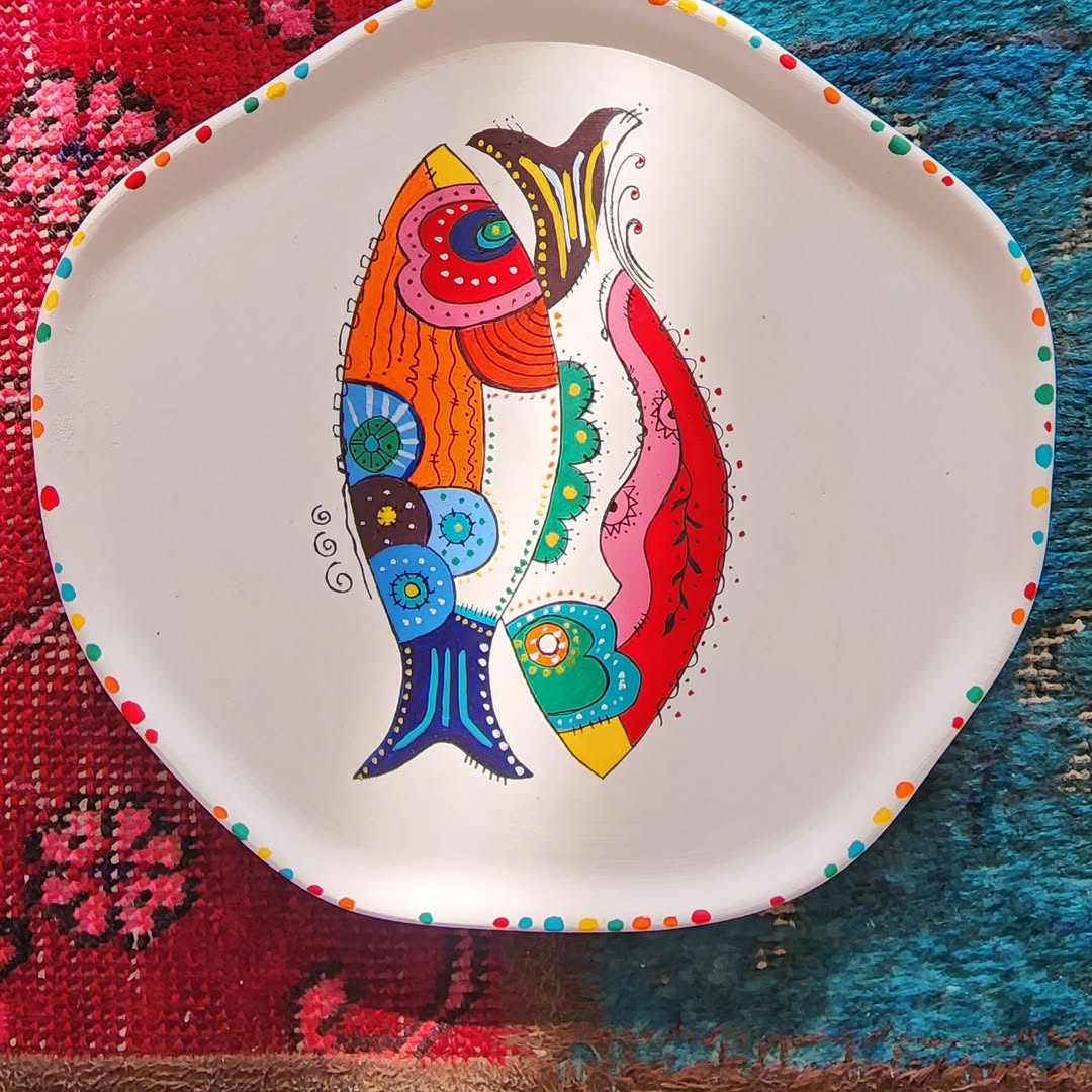 بشقاب دیوار کوب نقاشی روی سفال