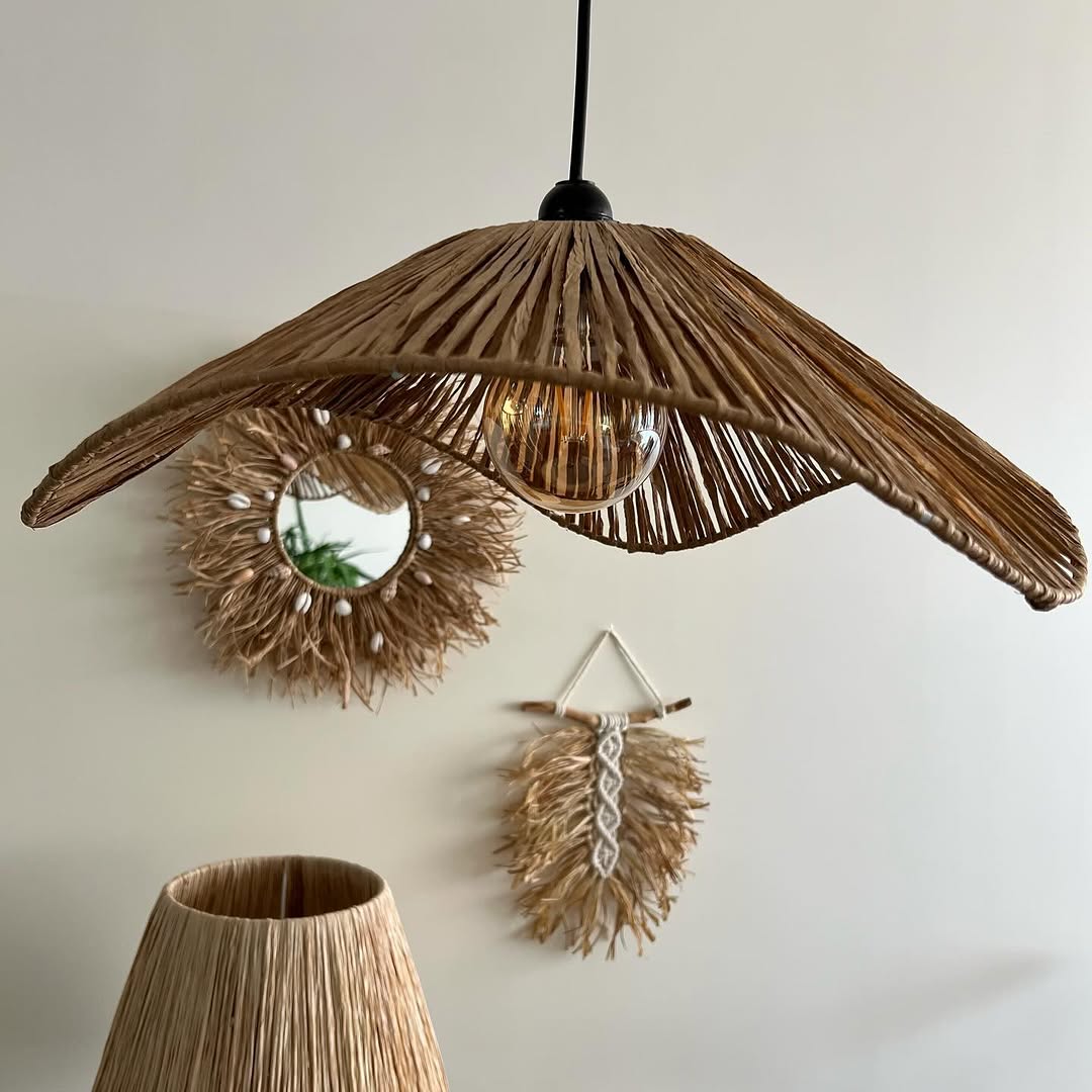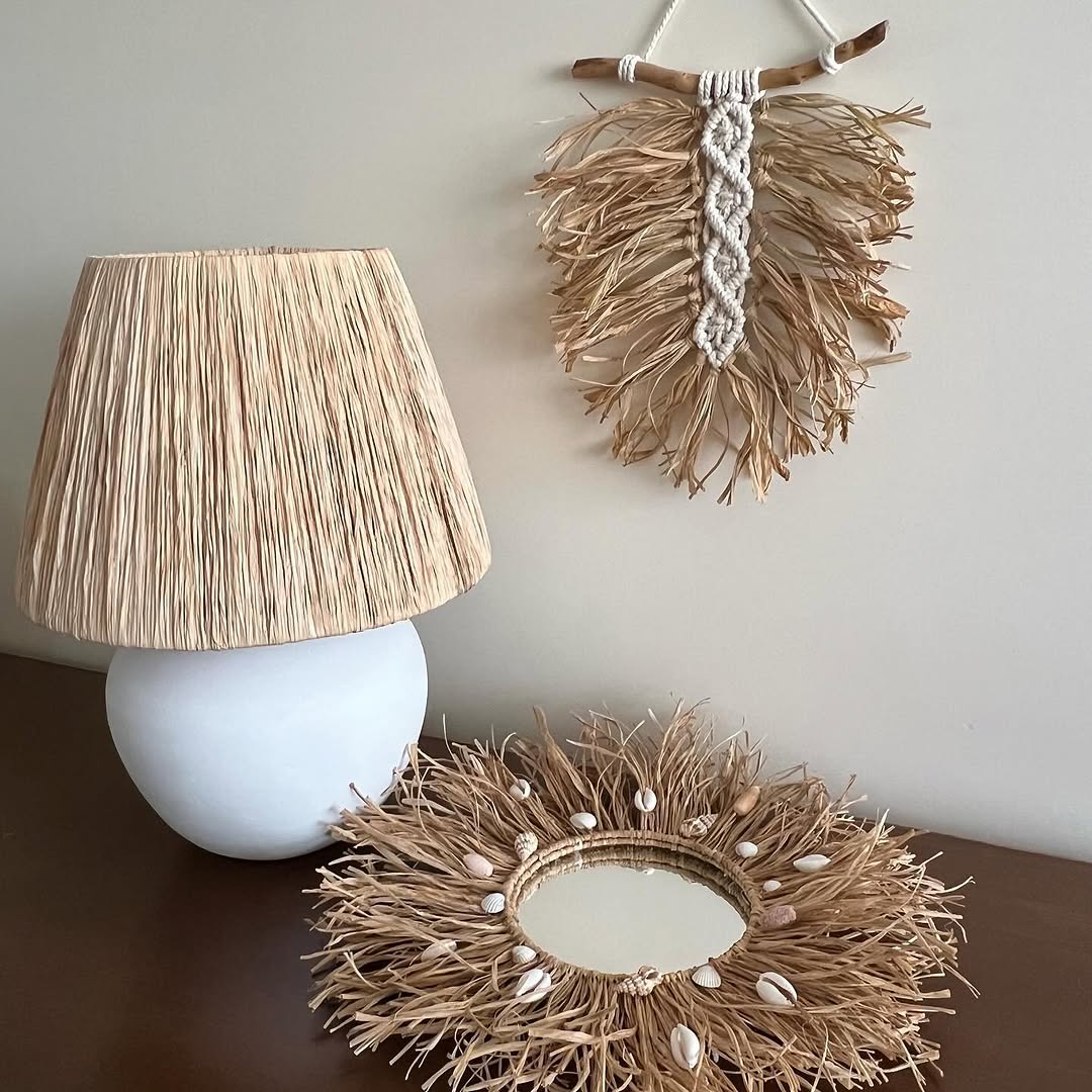 این مجموعه شامل آینه دیواری طرح منظومه صدفی با قطر ٢٠ و قطر کلی ٤٠ سانت، برگ رافیا وسط مکرمه با ارتفاع ۳۰ سانت، لوستر دفرمه رافیا با قطر ۵۰، و آباژور رافیا طبیعی با پایه سفالی رنگ شده و ارتفاع ۴۰ و قطر شید ۳۰ است.