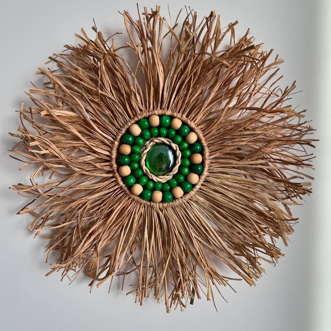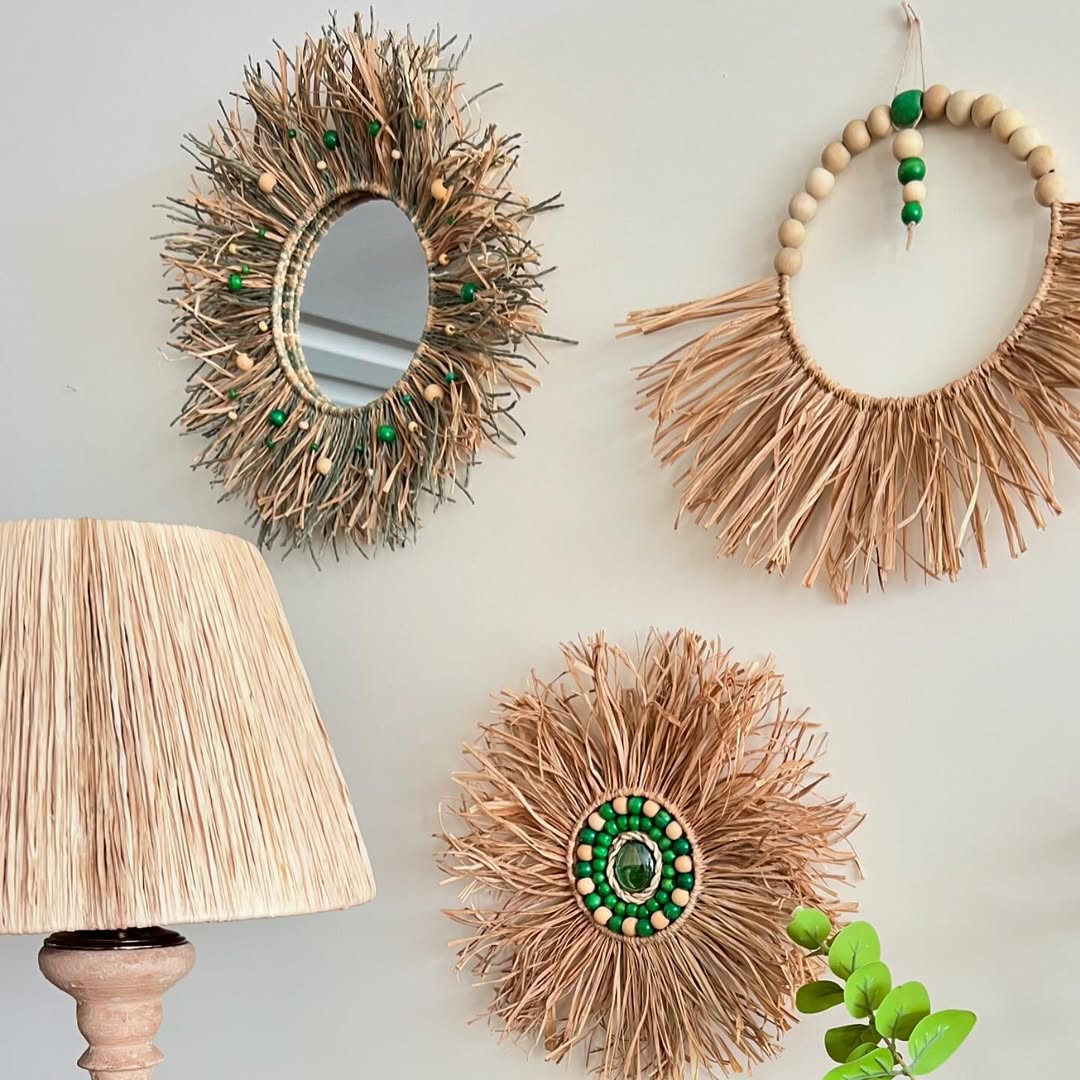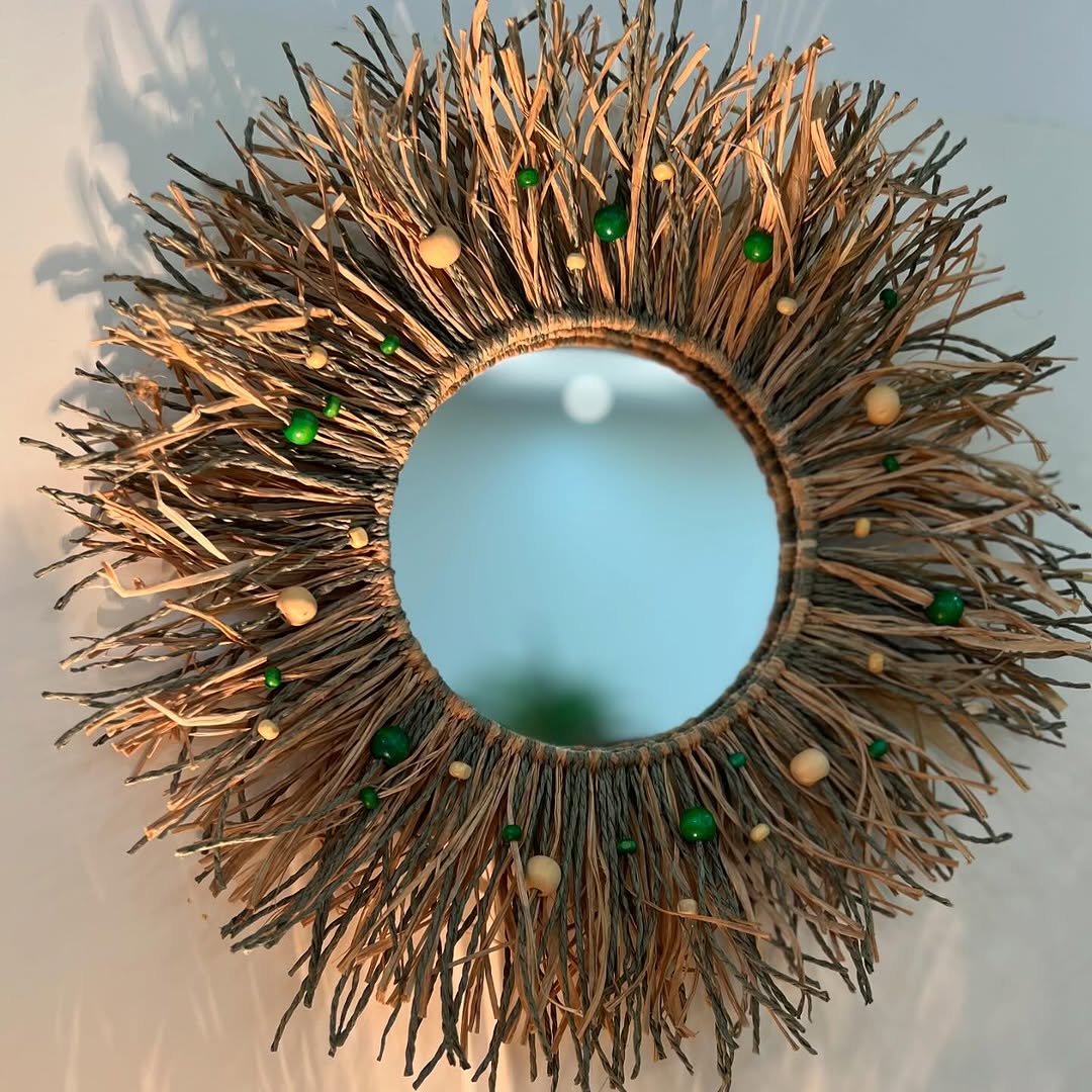 آینه دیوارکوب طرح منظومه با قطر آینه ۲۰ سانتیمتر و قطر کلی ۴۰ سانتیمتر.